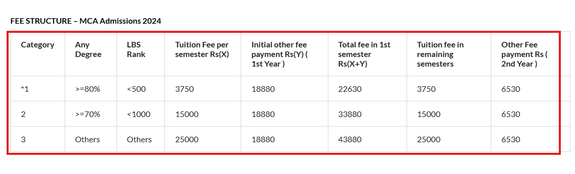 The tuition fee per semester will be charged according to the candidate’s graduation score and LBS rank. The detailed fee structure for all categories is given below: