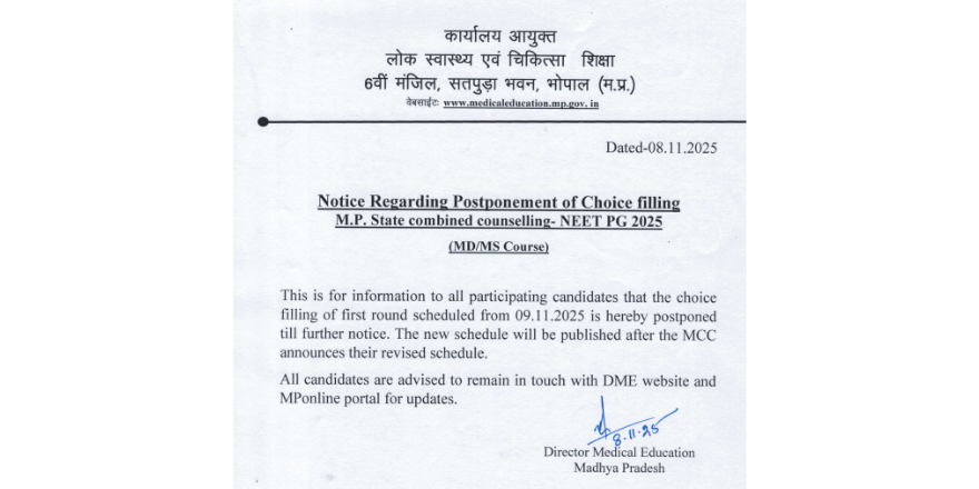 The decision to postpone the choice filling process comes amid changes and delays in the national-level NEET PG counselling, which serves as the base for all state-level counselling rounds. As a result, states like Madhya Pradesh have decided to align their own timelines with the central counselling process to maintain uniformity and avoid confusion among candidates.