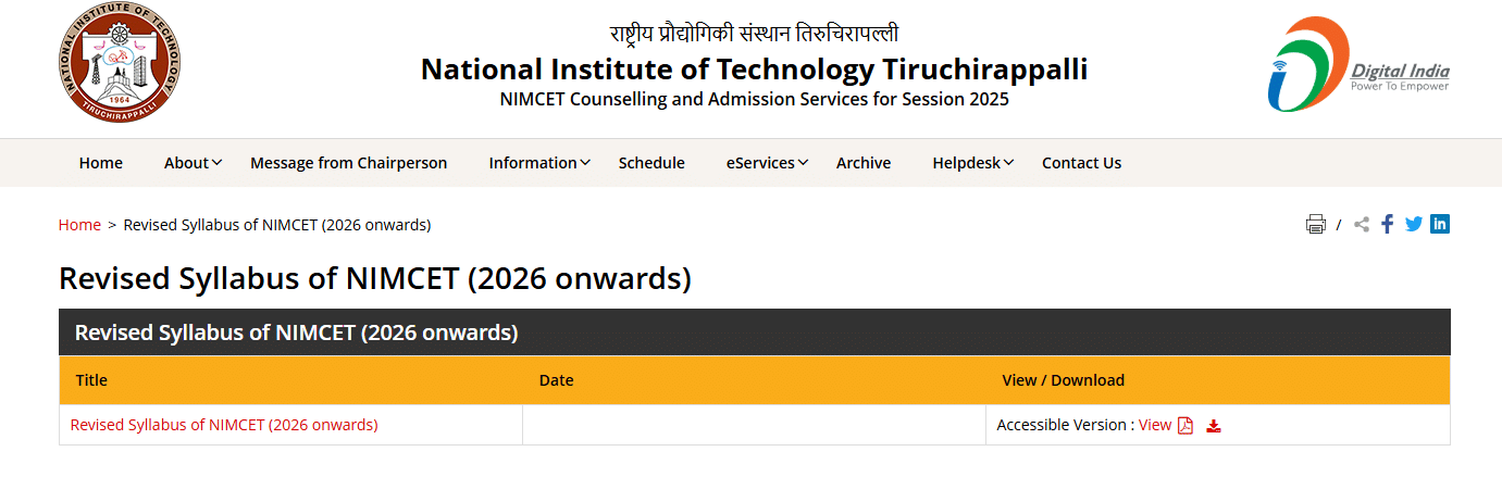 NIMCET 2026 will see a restructured syllabus, effective from this year onward, as announced on the official NIMCET site by NIT Tiruchirappalli.