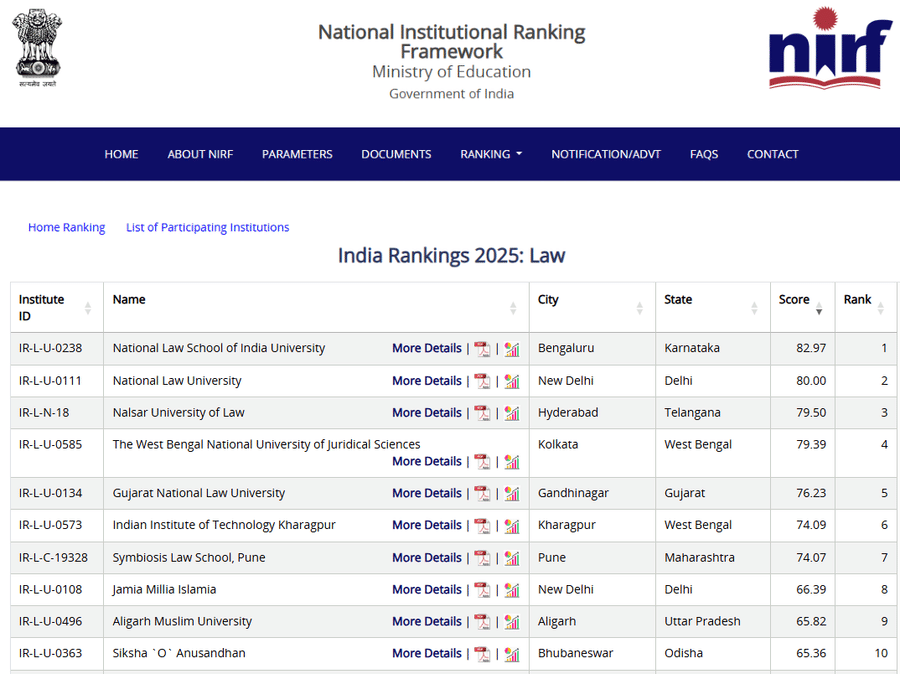 NIRF Ranking 2025 for Law Colleges: A Glance