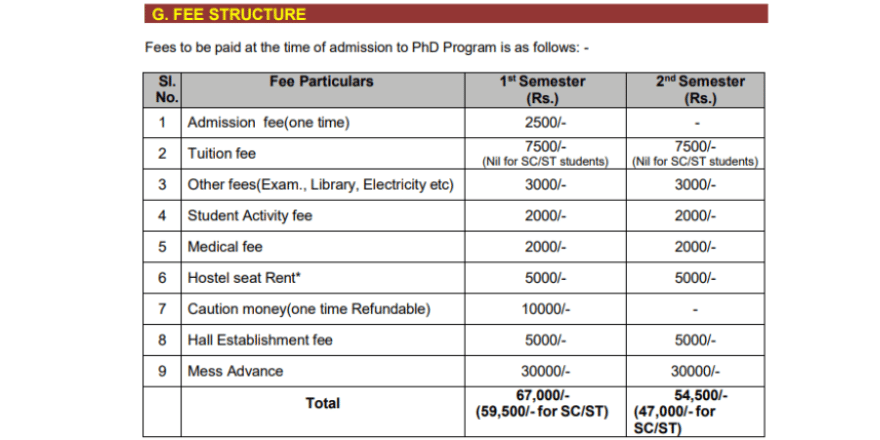 NIT Rourkela PhD Fee Structure