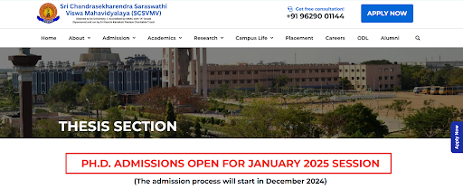 The SCSVMV PhD admission fee for full-time and part-time PhD candidates is INR 2000. Admission will be taken after the entrance examination and interview round.