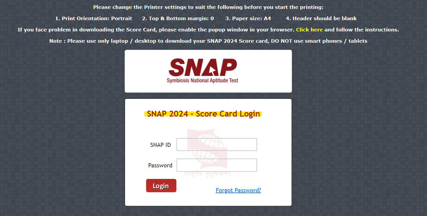 Candidates can follow these simple steps to access their SNAP 2024 scorecards: