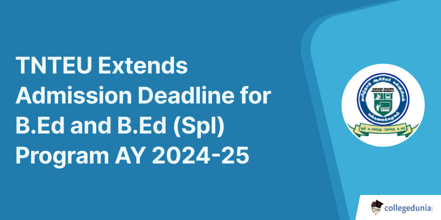 Tamil Nadu Teachers Education University (TNTEU) is inviting applications for the B.Ed and B.Ed (Spl) Degree Programmes for the academic session 2024-25 (1st Year). The last date for online admission and online eligibility fee payment has been extended up to November 15, 2024.