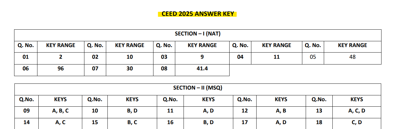 | CEED Draft Answer Key | Download CEED Answer Key |