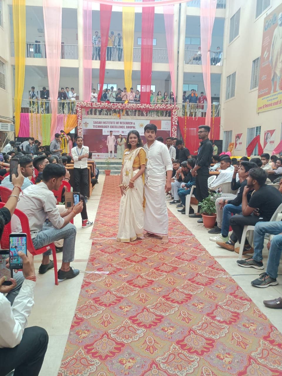 Well, area might be average as 12 acres I feel is not less or too much but I never felt that we needed more space. Sports facilities are immense and classrooms oh my word are so spacious and feels like luxury to be sitting in such classrooms. Our tech fest happened last month and it's called Tech Saga and annual fest is called Sage Utsav which is year end fest and happens mostly in April or May.