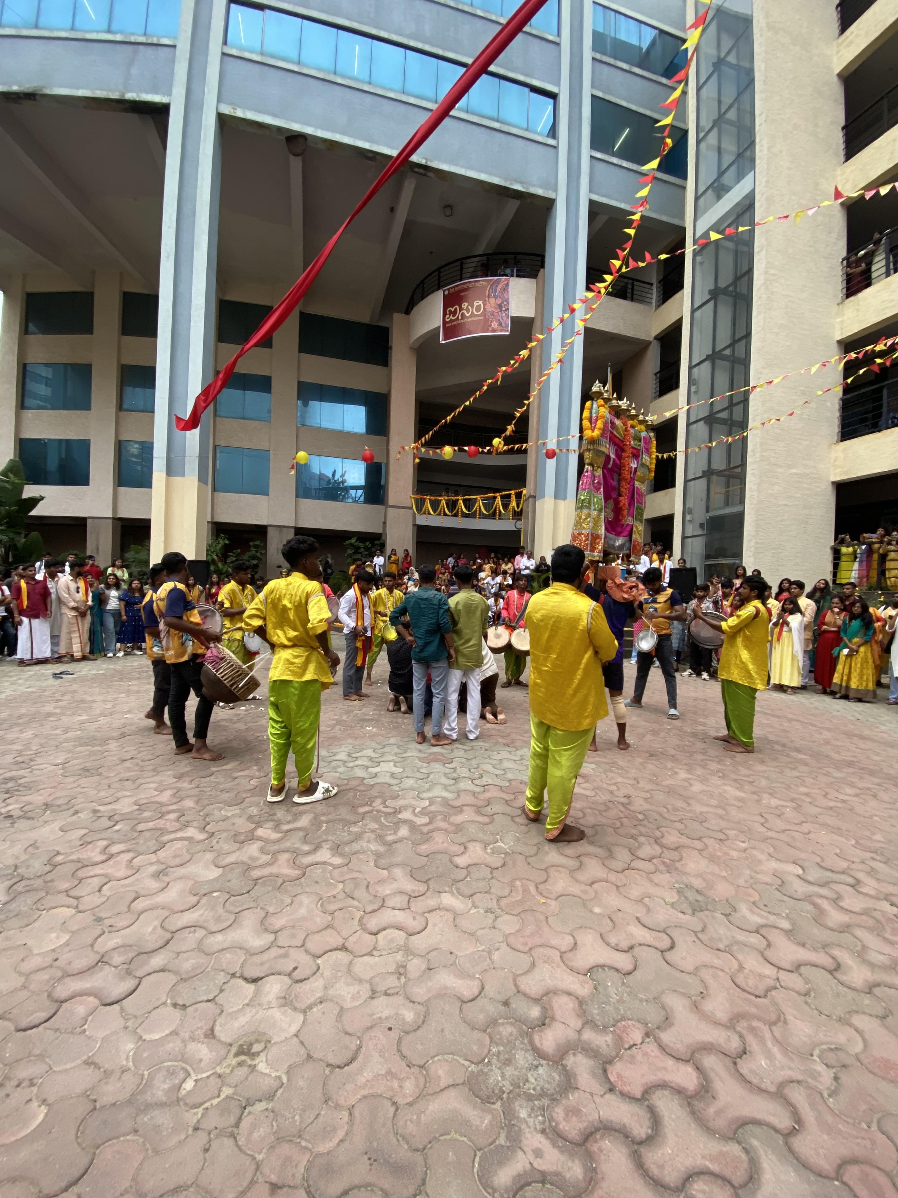 The campus is small but contains all the amenities needed like Canteen , Stationery and Xerox shop , Library, Labs ( All Subs which require labs ) , Parking space , Playground, Feild , Volleyball Court , Indore games room ( Table Tenis , Carrom , Chess etc . Many events are also conducted on special occasions like Kannada Rajyostava , Garba , Diwali , Independence Day etc . They are many activity clubs like Cultural Club , Dance club , etc who organize many events They are also some external events like Hackathon , Marathon, Cyclothon etc The students are also friendly and they do socialize a lot
