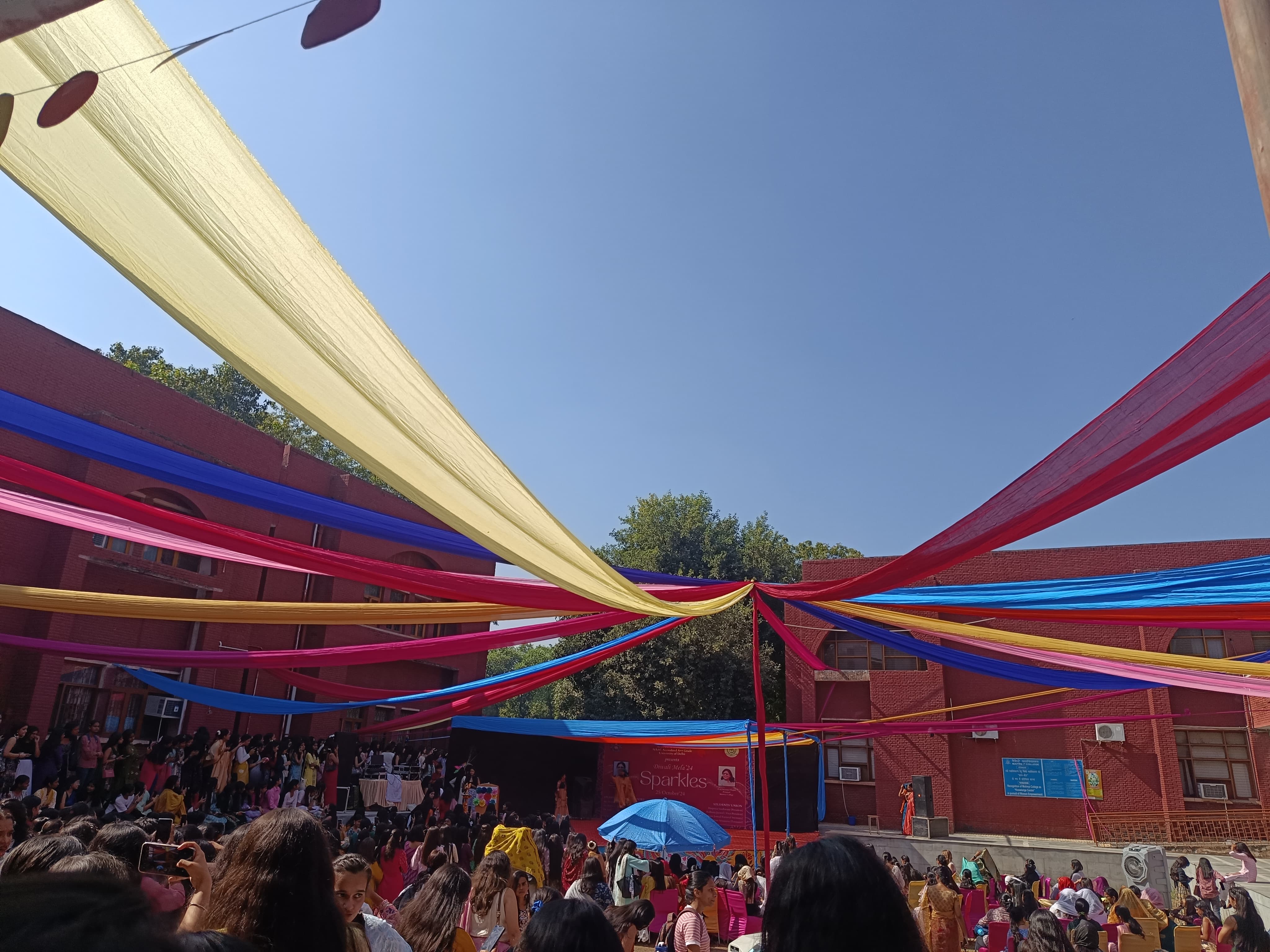 Many functions, festivals are always ongoing, Kuch na kuch to hota hi reheta hai college mei. Be it from the societies, department's sports etc. The library is also one good option to be spoken about. As many students are always occupied in it and many a times it's always full that we don't get seat and had to leave the library and come outside and sit in the Open audi under sun .