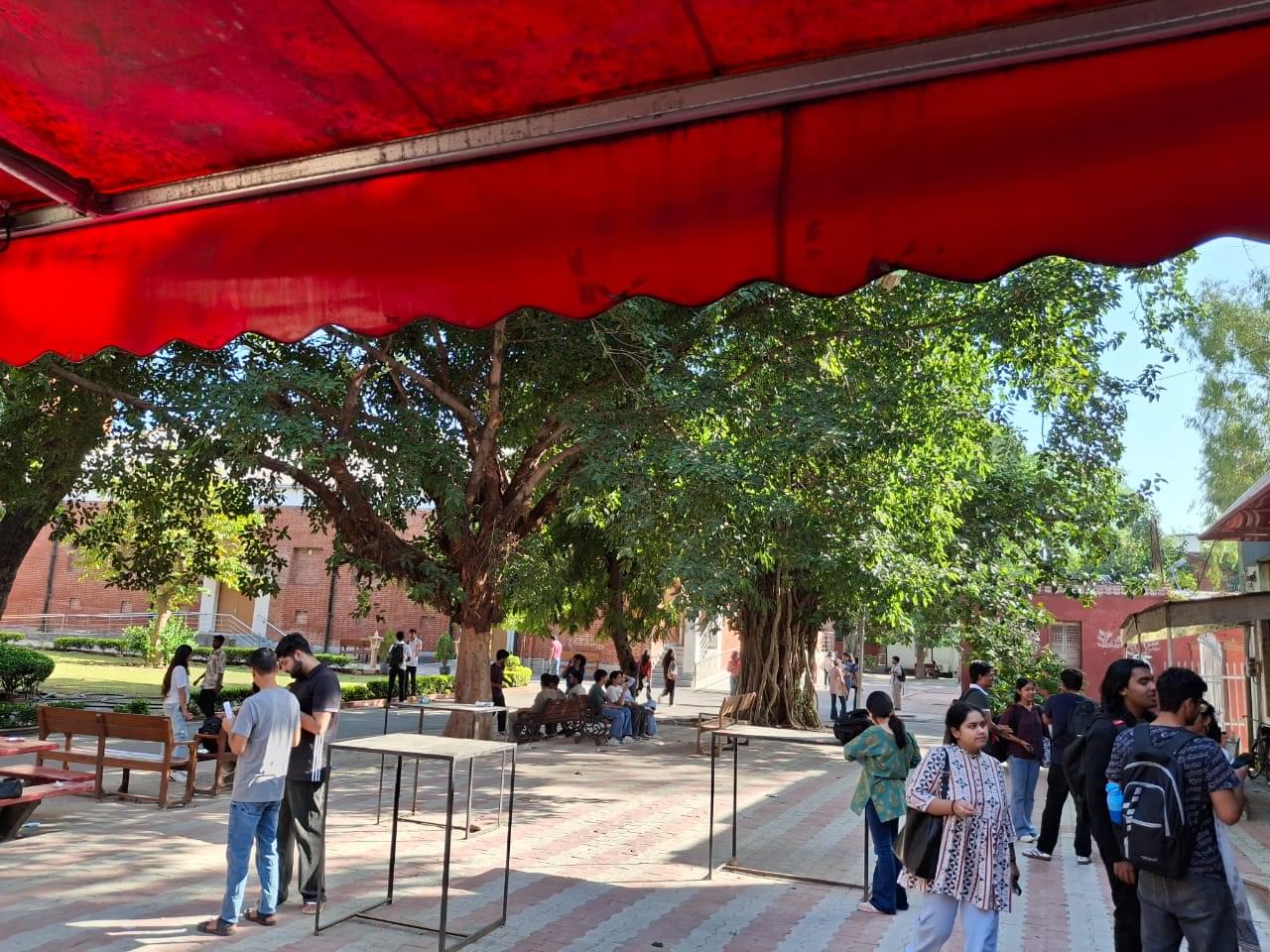 College is only for hostel students as rest all have to leave at max by 6 pm. Delhi NCR though offers a great life and a great night life as two gardens Lodhi Garden and Garden of 5 Senses both are amazingly good. Even asthetic cafes are extremely good and we have them in numbers around our college.
