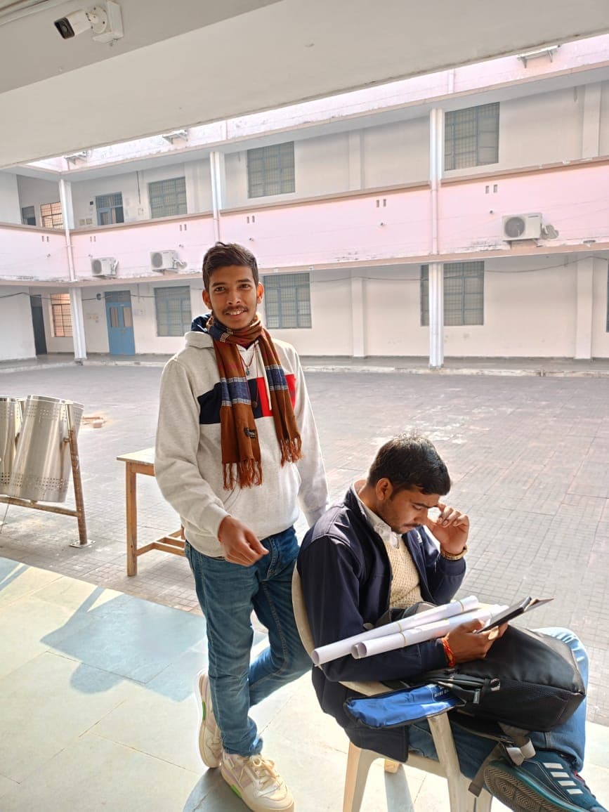 In our college campus very peace and cool environment students are walking, in evening and roads of our college like a highway bcoz college is government.In our college a Gym( in which first year not allowed) is very beautifuland 2 cafererias and A Central Library (computing system and AC room available) and CSA for playing games.In first year hostal students are not allowed after 5pm for first three months.