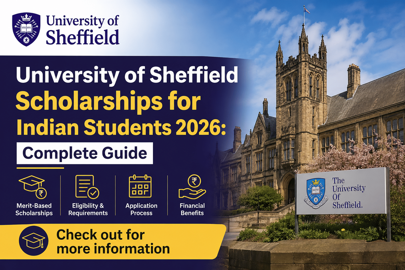 The University of Sheffield offers several postgraduate scholarships for Indian students pursuing Master's degrees.