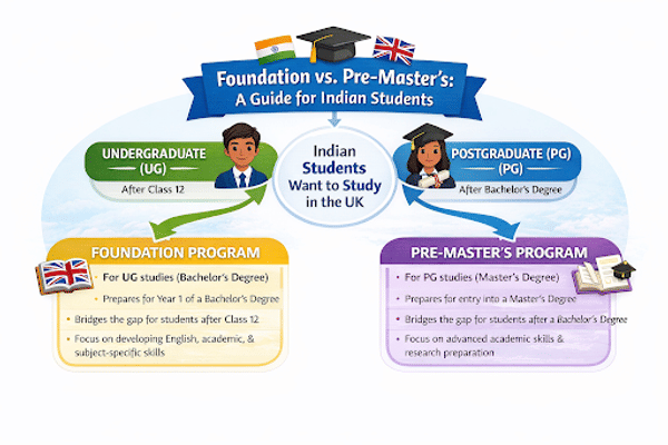 Note: Foundation courses are designed for students aiming to enter undergraduate programs, whereas pre‑master’s courses prepare students for postgraduate studies.