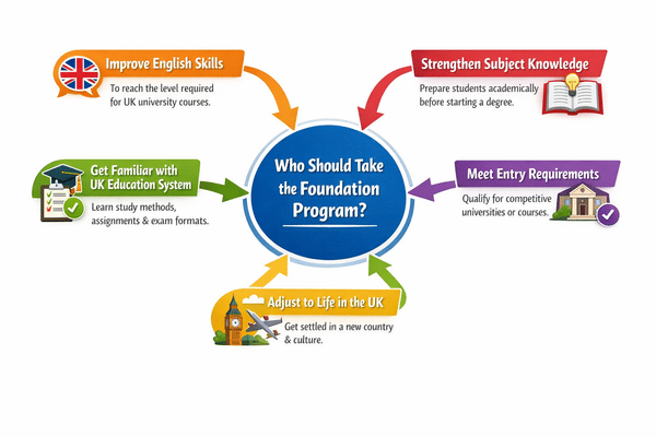 - Subject-Specific / General Foundation Program: A subject-specific foundation programme prepares students for a particular field like engineering or business, while a general foundation programme builds basic academic and English skills for students who are still undecided about their degree choice.