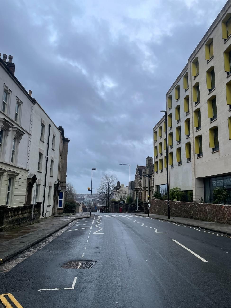 - For future students the advice i can give them is just don't look at the distances from the campus; also consider that Bristol is quite hilly so maybe you check the elevation from google maps because this happened to me. my place is around a 20 mins walk from uni but i have to climb a hill, which is a pain.