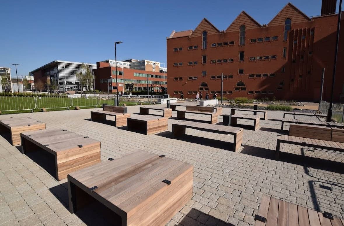 Dmu's campus is widespread with beautiful and new buildings for different faculty. modern infrastructure that would attract everyone's attraction and extracurricular activities that would help in the overall development of a student. the campus provides all kinds of support from beautifully designed library to auditoriums , outdoor activities like swimming , gym, variety of social clubs to join, dramas, sports etc etc. The list goes on and one.