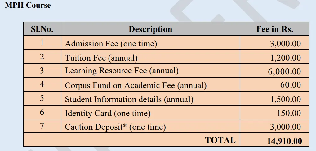 Earlier, MPH fees at JIPMER was ₹ 17,520 (in 2024) for the entire course duration. This shows a fee increase of ₹ 6,150 over the year.