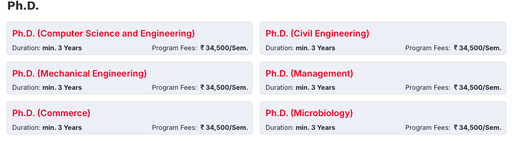 Ph.D Microbiology at Darshan University Rajkot is a 3 Years Degree. The course is offered On Campus as a Full Time program. Darshan University Rajkot Ph.D Microbiology First Year Fees is INR 69,000 for 2025.