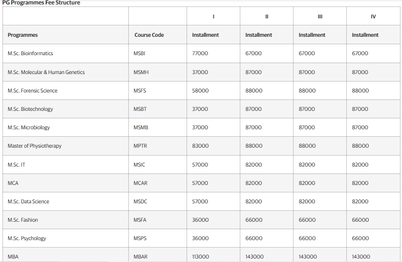 | Semester Wise Fees | ₹68500 | ₹91500 | ₹91500 | ₹91500 |