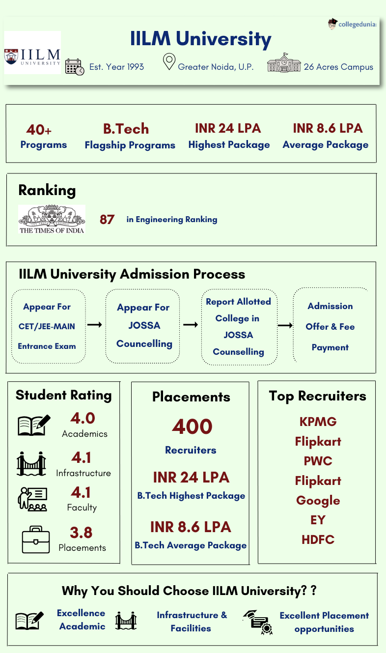 | IILM University, Greater Noida | INR 1.9 - 2.5 Lakhs Approx for B.Tech Courses | PWC, KPMG, Deloitte, Google, Blackrock, ITC Limited, LT, Godrej, EY, Kotak, HDFC Bank, Reliance. | 8.6 LPA | 24 LPA |