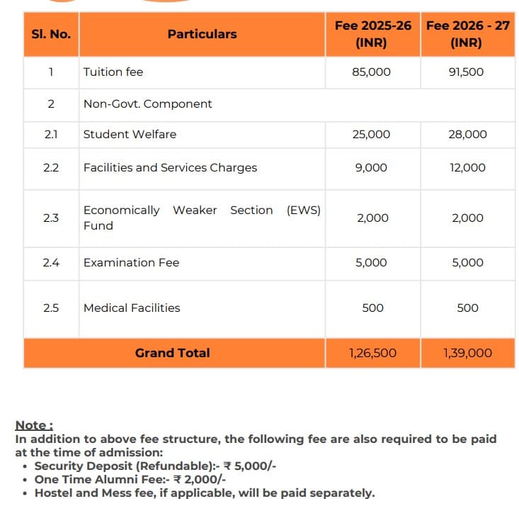 - Candidates need to pay ₹ 1.34 Lakhs in the first year.