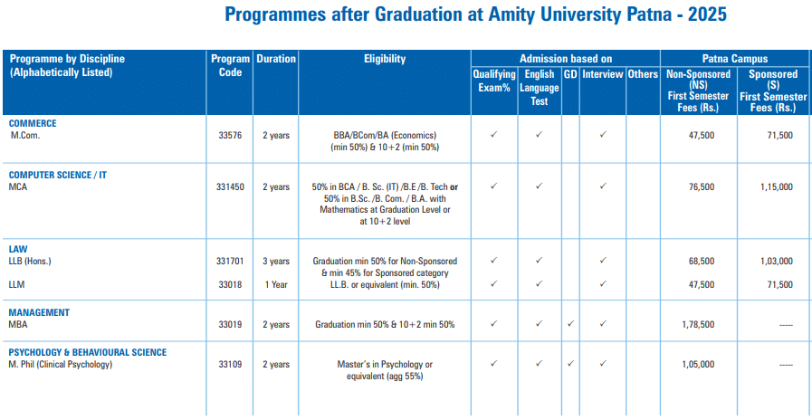 | Amity University Patna | ₹ 4.52 Lakhs |