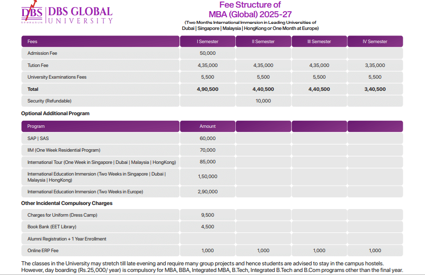 DBS Global University Dehradun MBA Global Fees