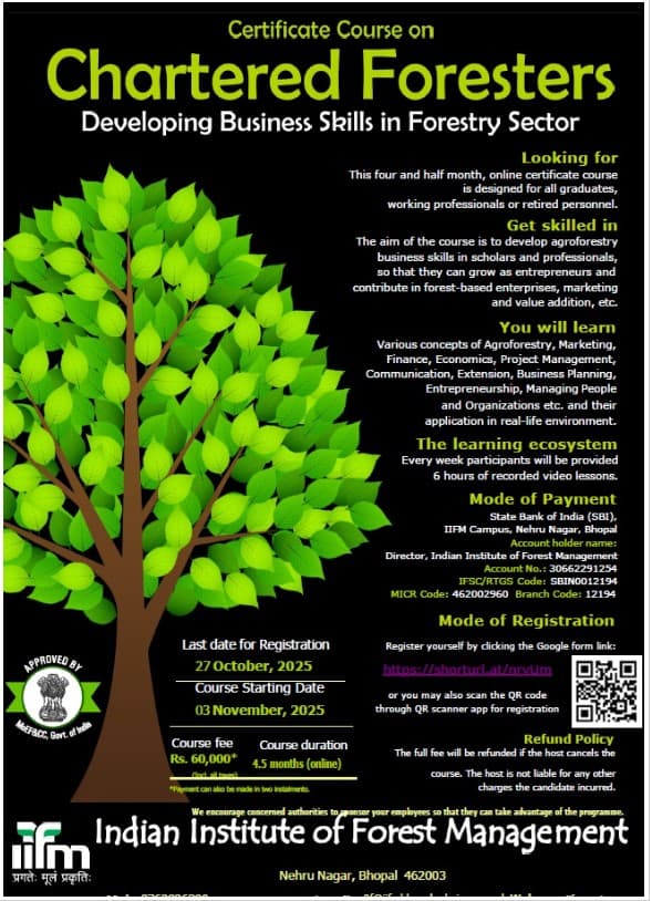 | Last Date of Submission of Application for Admission Certificate Course in Chartered Foresters | Oct 28, 2025 |