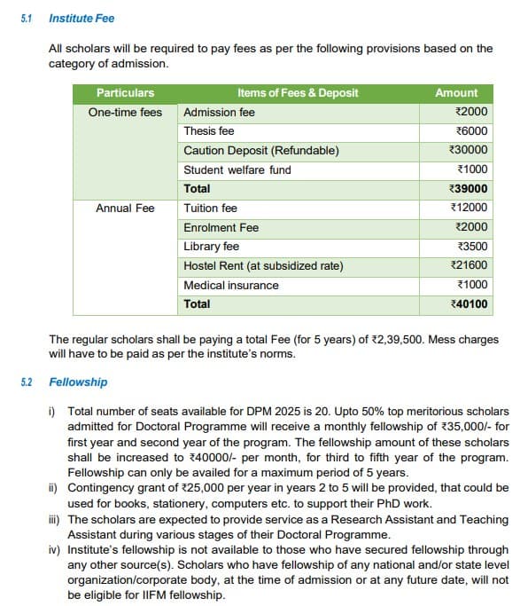 IIFM Ph.D. Fees