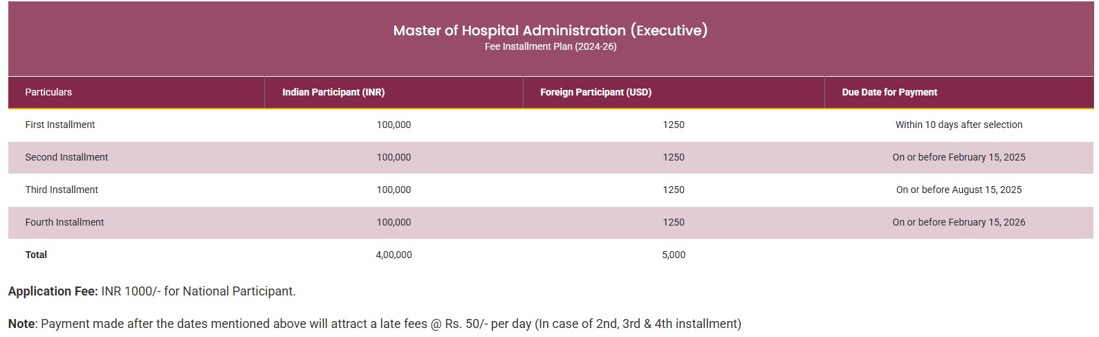 | Total Fees (2024 - 2025) | ₹4 Lakhs |