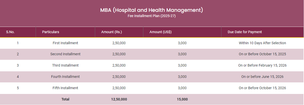 ** Admission to the college requires clearing the MAT exam with a minimum score of 680 percentile, followed by an online application, and participation in a Personal Interview (PI) and Group Discussion (GD). The faculty is highly experienced, contributing significantly to research funding. The academic fee is 5 lakhs per year for two years, with an additional 1.5 lakhs for hostel accommodation. Hospital management students face a fee of approximately 9 lakhs, while different fees apply to pharma and rural management programs.