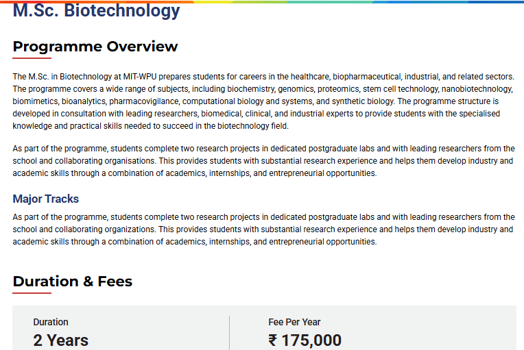 The M.Sc Biotechnology program includes two theory classes of 31 students each and three practical batches. The faculty is experienced, approachable, and supportive, providing guidance in both lectures and lab work. Students receive mentorship for additional support. Placement opportunities begin in the second year and intensify in the third semester, with the 2022-2024 batch achieving high placement rates. Companies like Serum Institute, Sun Pharma, and Lupin conduct interviews, though some, like Serum Institute, restrict placements to male candidates.