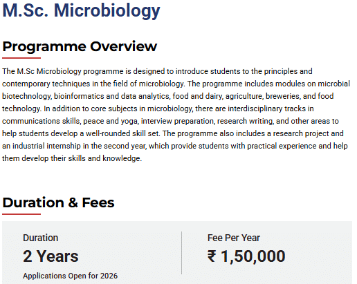 The course features an engaging faculty-student relationship, with approachable instructors who support students in their studies. The academic structure includes two main exams each semester, both worth 30 marks, alongside continuous assessments ranging from 15 to 30 marks. The mid-term exam is valued at 30 marks, while the end-semester exam carries 40 marks. Campus placements are robust, with more than 80% of students placed in companies such as Serum Institute, Reliance Life Sciences, and Gennova.