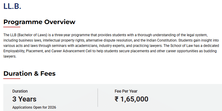 Earlier, L.L.B fees at MITWPU was ₹ 4.95 Lakhs (in 2025) for the entire course duration. This shows that the fee has remained unchanged since 2025.