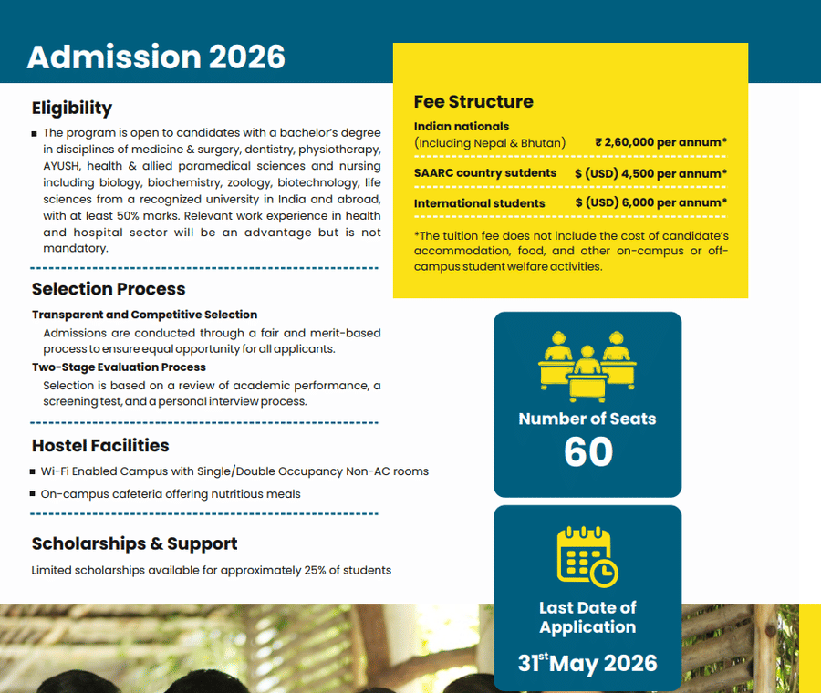 Earlier, M.H.A [Hospital] Hospital Administration fees at Indian Institute of Public Health Gandhinagar was ₹ 5 Lakhs (in 2024) for the entire course duration. This shows a fee increase of ₹ 20,000 over the year.