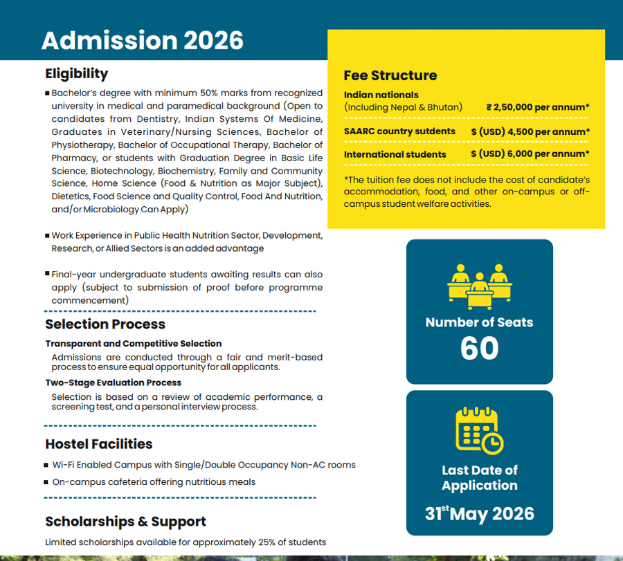 Indian Institute of Public Health Gandhinagar M.P.H Public health Nutrition fees 2025 is ₹ 5 Lakhs for the entire course duration.