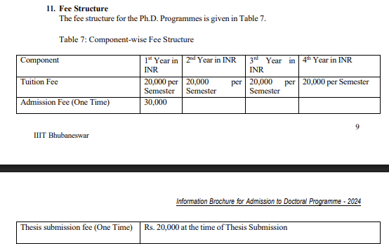 Earlier, Ph.D Mechanical Engineering fees at IIIT Bhubaneswar was ₹ 1.9 Lakhs (in 2024) for the entire course duration. This shows a fee increase of ₹ 20,000 over the year.