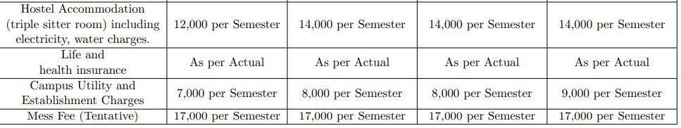 hostel_summary: IIIT Bhubaneswar offers two main hostels, with a third under construction, each having 8-9 floors and accommodating students in single, double, triple, or quadruple occupancy rooms. The hostels provide essential amenities like beds, study tables, chairs, and almirahs. The fees range from Rs. 9,000 to Rs. 25,000 per semester, depending on room type, with single rooms being charged higher.