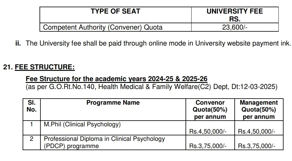 NTRUHS M.Phil Clinical Psychology fees 2025 is ₹ 9 Lakhs for the entire course duration.