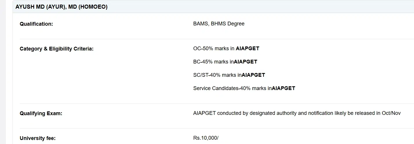 Earlier, M.D Homoeopathic - Repertory fees at NTRUHS was ₹ 30,000 (in 2024) for the entire course duration. This shows that the fee has remained unchanged since 2024.
