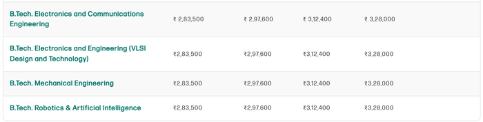 | College | B.Tech Electronics & Communication Engineering Total Fees |