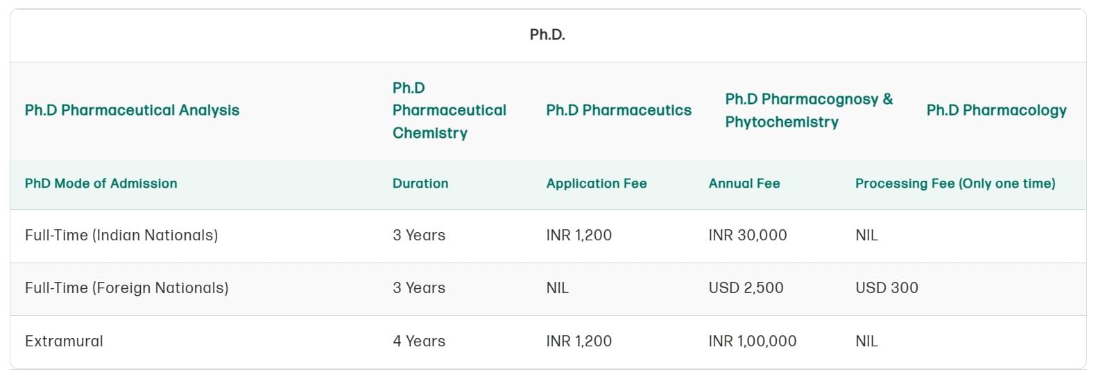 | College | Ph.D Pharmacognosy & Phytochemistry Total Fees |