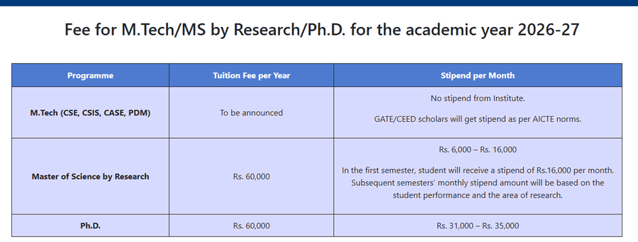 To enroll in the M.Sc program at IIIT Hyderabad, candidates must pass the PGEE entrance exam and an interview. The institute hosts 5,000 students and over 100 faculty members, all PhD holders, ensuring a favorable student-to-faculty ratio and a supportive educational environment. The full fee for the M.Sc program is INR 5,65,000, with tuition at INR 2,00,000, hostel fees at INR 42,000, and mess fees at INR 34,000. The semester fee is INR 75,000 for the 2-year course.