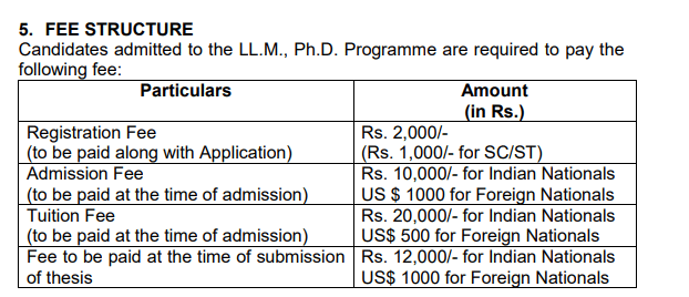 - The total fees for L.L.M + Ph.D is ₹ 1.04 Lakhs.