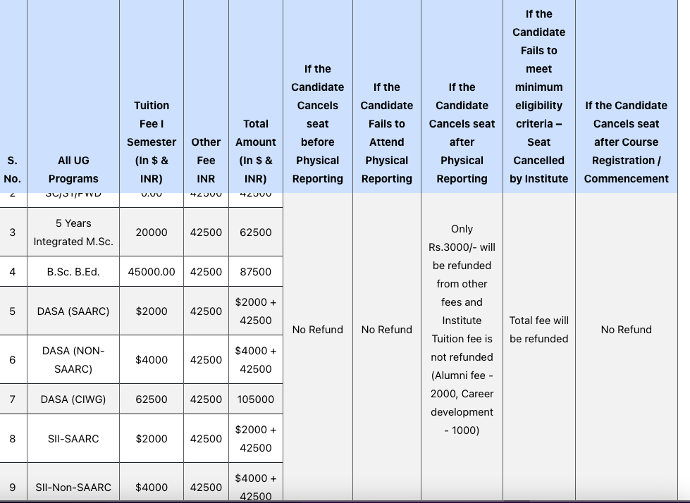 | College | B.Sc + M.Sc Mathematics Total Fees |