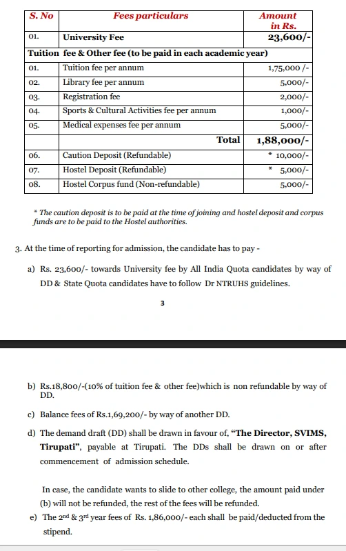 SVIMS Tirupati M.D Radiodiagnosis fees in first year is ₹ 2.22 Lakhs. The detailed fees is mentioned below.SVIMS Tirupati Hostel Fee is ₹ 15,600 to 60,000.