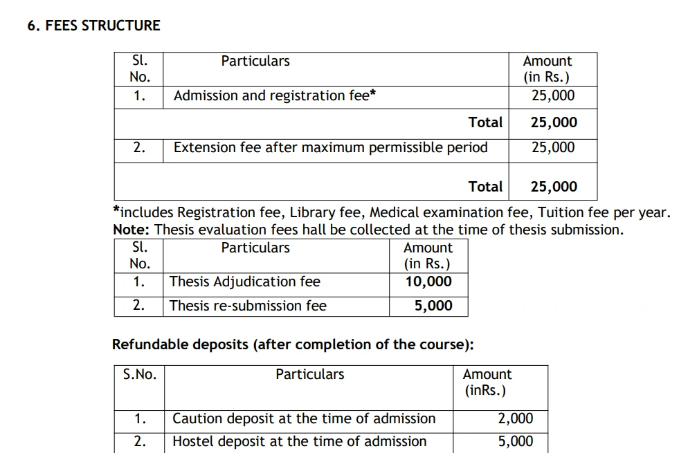 | Fee Type | Total Amount (INR) |