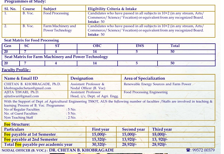 Assam University Silchar B.Voc Farm Machinery and Power Technology fees 2025 is ₹ 88,160 for the entire course duration.