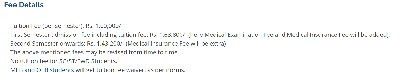 - Candidates need to pay ₹ 3.07 Lakhs in the first year.