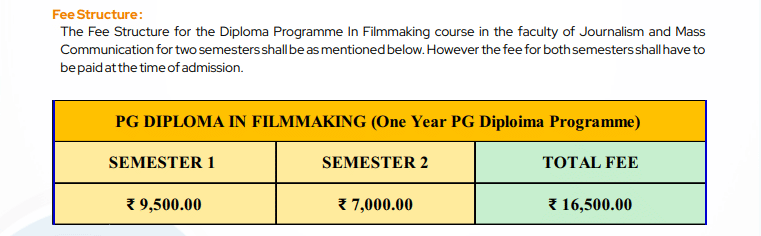 AKU PG Diploma Film Making fees 2025 is ₹ 16,500 for the entire course duration.