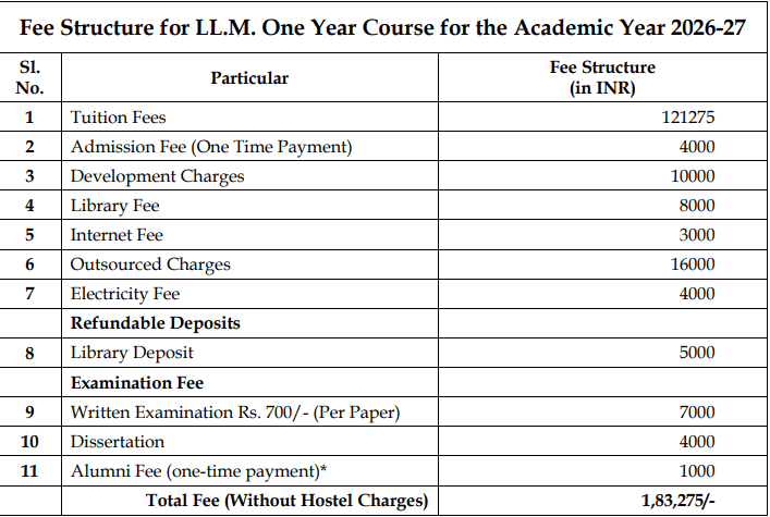 Earlier, L.L.M fees at CNLU Patna was ₹ 1.74 Lakhs (in 2025) for the entire course duration. This shows a fee increase of ₹ 4,775 over the year.